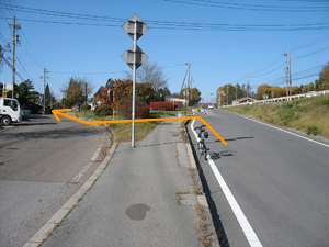 ⑨【左の道へ】AM 08:59 バイパスをくぐったところ。