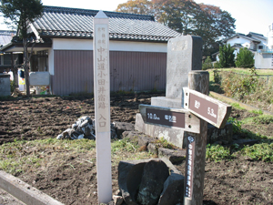 ②【御代田一里塚】AM10:20 畑の中にある。 一里塚にはめずらしい枝垂れ桜が植えられている。